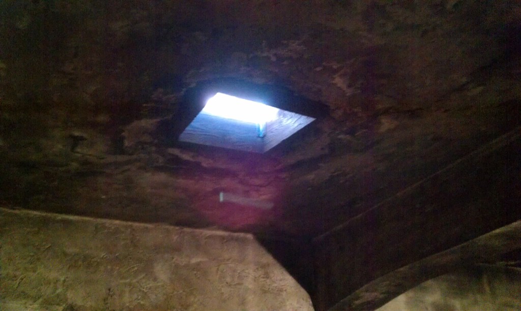 In the first models of gas chambers the gas cannisters were dropped from panels on the ceiling like this one. Picture taken by the author of this blog and article