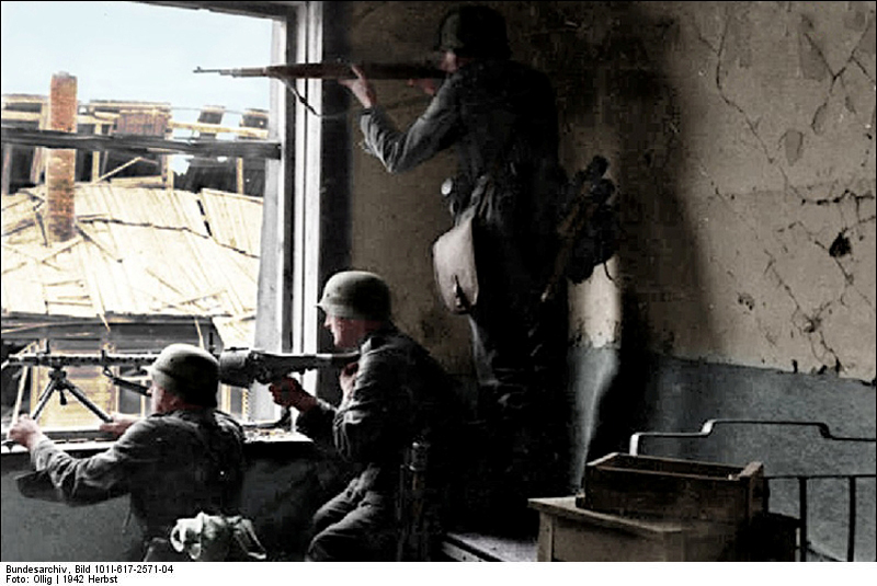 German soldiers manning a machine gun. Stalingrad. September, 1942. Copyright: Bundesarchiv, Bild 101I-617-2571-04/CC-BY-SA 3.0. Source
