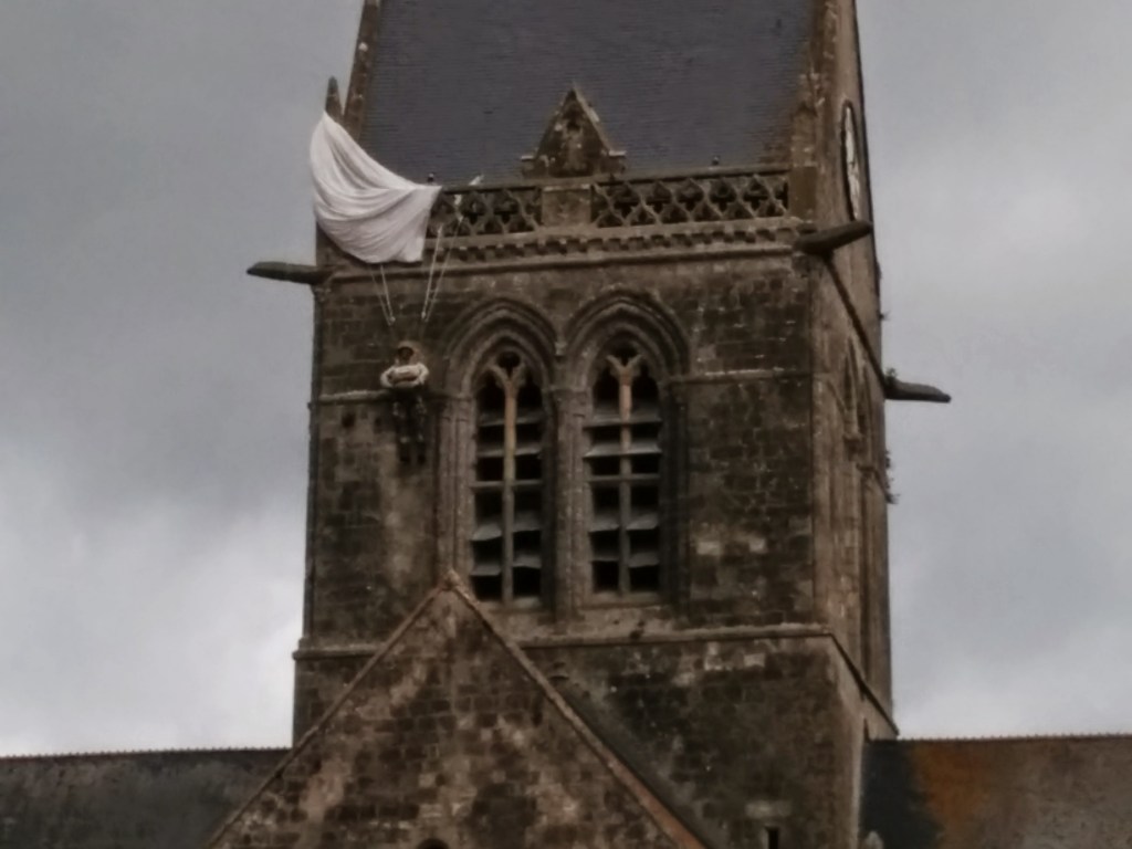 After midnight the C-47s reached the French coast, descending to 1.000 feet for the drop, but that left them within range of the Flak anti-aircraft. Slipping on the vomit soaked floor, and tossed around because of the dodgy-dizzy manoeuvres, the terrified soldiers struggled to dive out. Some needed an encouraging kick from their officer, and some got broken legs and ankles when their C-47s descended lower than 500 feet. Others suffered broken backs, or died, when their parachutes lacked time to open.