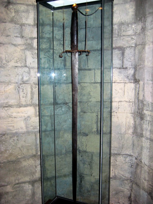 However, Braveheart makers decided to play safe when it came to the weapon of choice of William Wallace. Although as hinted in another of my posts about the hero of the Scottish Wars of Independence, Robert the Bruce aside, Wallace’s crest was a bow, and he might have chosen such to give battle. But being a noble, and later a very important one as leader of the Scots, is plausible that the sword would have displaced the bow and arrows. For the sword has been traditionally the weapon of nobles and kings. In Stirling, in the Wallace Monument, a long sword is kept there, traditionally though to be the sword of William Wallace. A two-handed sword, similar to the one that Mel Gibson brandishes in the movie.