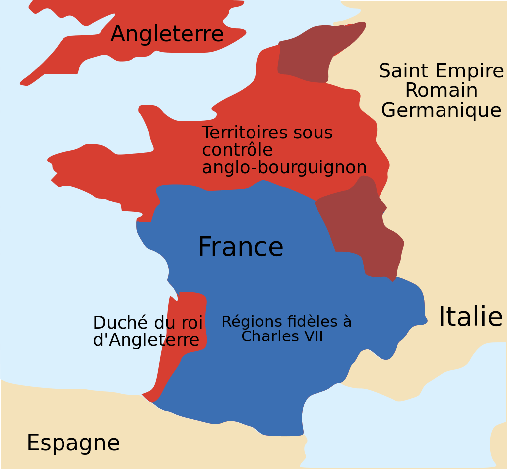 A major English victory at Azincourt in 1415, coupled with the mental illness of Charles VI of France, and the subsequent civil war between Armagnacs and Burgundians for the regency, had opened the kingdom’s gates for the English to throng in. With Normandy and Gascony under their thumb, their rising star shone brighter than ever thanks to an alliance with Burgundy. The assassination of the Duke of Burgundy, John the Fearless, by supporters of the Dauphin Charles (future Charles VII) had thrown John’s son, Philip, into English arms. Burgundy henceforth, supported the claims of Henry VI, the king-boy of England, to the French throne; while the Armagnac supporters fought for the Dauphin.